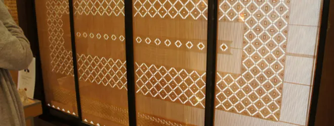 大川の匠による大川組子の建具・一刀彫の作品、デザイン性・耐久性に優れた作品、全国的に有名な作品などを展示している。