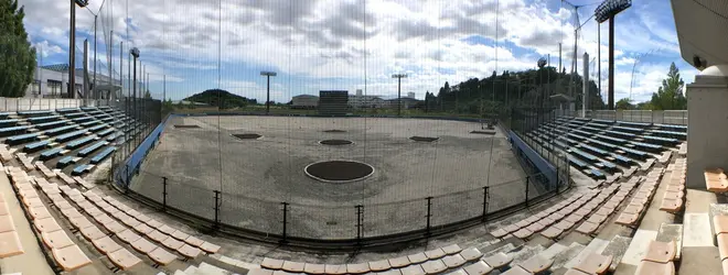 宮城スタジアムのすぐ先にある野球場です。実は楽天の二軍がつかったりもするそうで、ネーミングライツ?で楽天イーグルスの名前が付いています。ちなみにこの時は芝の張り替え中で非常にレアなタイミングでした。