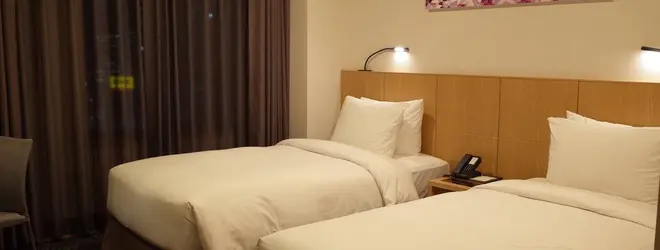 今回宿泊したホテル。フェヒョン駅から歩いて30秒ほど、目の前は空港行きのバス停と、アクセス抜群です。(フェヒョン駅は明洞駅の隣)