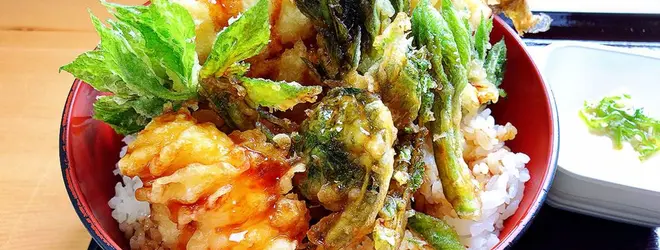 ボリュームたっぷりの岩魚天丼。 山菜のシーズンはお値段はそのまま、満足感増!