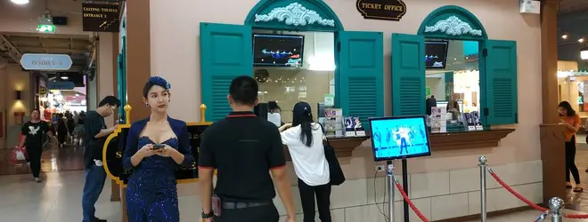 チケット売り場。近くで見てもホントに綺麗なニューハーフのお姉様。
