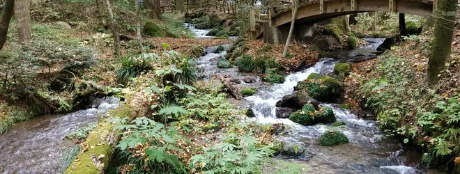 全国名水百選の1つである尚仁沢湧水がそそぐ尚仁沢 川に沿っての遊歩道。十数カ所から湧き出る清冽なる湧 水は、動植物に豊かな潤いを与えてくれます。