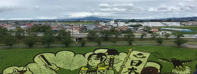 田んぼアート第二会場。道の駅には大型遊具有料もあります。