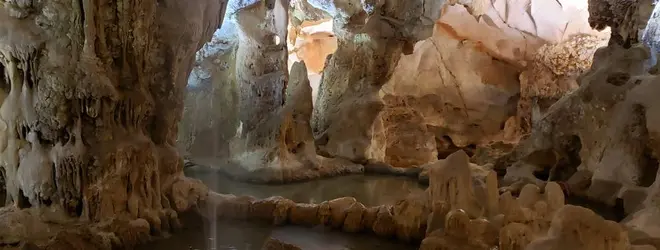 幻想的にライトアップされた鍾乳洞です。