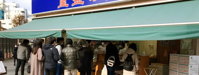 人形町といえば人形焼き!重盛永信堂は人形町駅A1出口からすぐ、大通り沿いにありすぐに目につくお店です。いつ通っても人が並んでいる人気店。