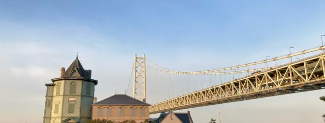 明石海峡大橋と淡路島を望む風光明媚な公園。