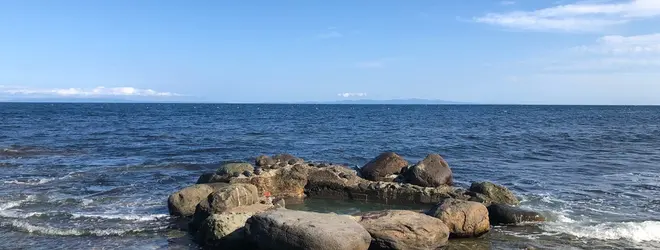 北の国から「遺言」で登場する露天風呂。 干潮になると出現する海上露天風呂。 岩間から熱湯に近い源泉が吹き出し、冷たい海水と調和されてちょうど良い湯加減になるそうです。 日によって出現する時間が違うので、きちんと確かめてから行きましょう。 満潮時はただ海になってしまいますので。