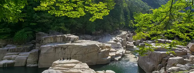 中山道 木曽路に「木曽八景」として 数えられる景勝地。その昔、浦島太郎が 竜宮城から帰り玉手箱をあけて、眠りから 覚めたとされる場所。