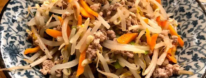 【松山のもやしと肉のピリ辛イタメ】