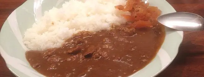 自慢のカレーライスと大きめのサラダを