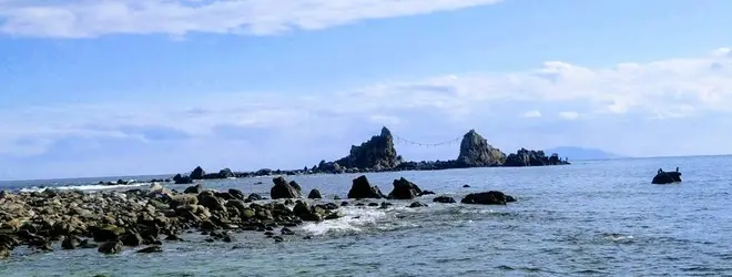初日の出スポットで有名な海岸。元旦には写真右上の岩場から初日の出が拝める...